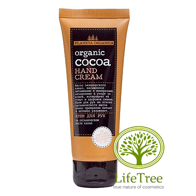 Organiczne masło kakao (Theobroma Cacao Seed Butter) – otrzymywane z owoców kakaowca, wykazuje niezwykle skuteczne działanie natłuszczające, nawilżające i ochraniające. Zawarte w maśle składniki organiczne są z łatwością tolerowane i łatwo wchłaniane przez skórę, a dzięki tym właściwościom jest biozgodne ze komórkami naskórka człowieka. Dzięki niemu krem do rąk masło kakao łagodnie oddziałuje na skórę, nie powoduje podrażnień oraz zapewnia właściwe nawodnienie skóry w ciągu dnia. Dzięki wysokiej zawartości magnezu masło posiada znakomite właściwości wzmacniające skórę, a stosowane w okresie zimy, doskonale chroni przed działaniem niskich temperatur i wiatru.